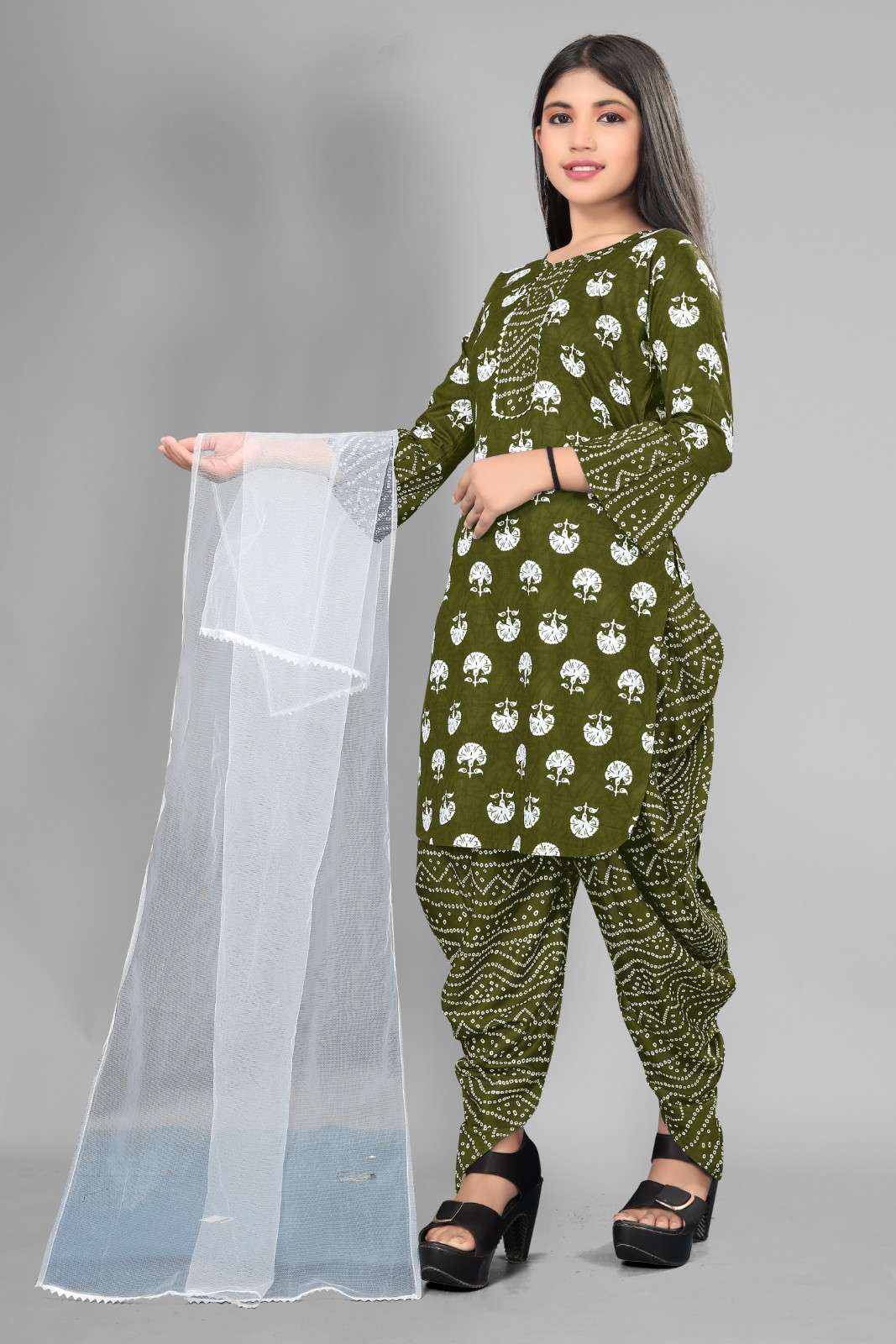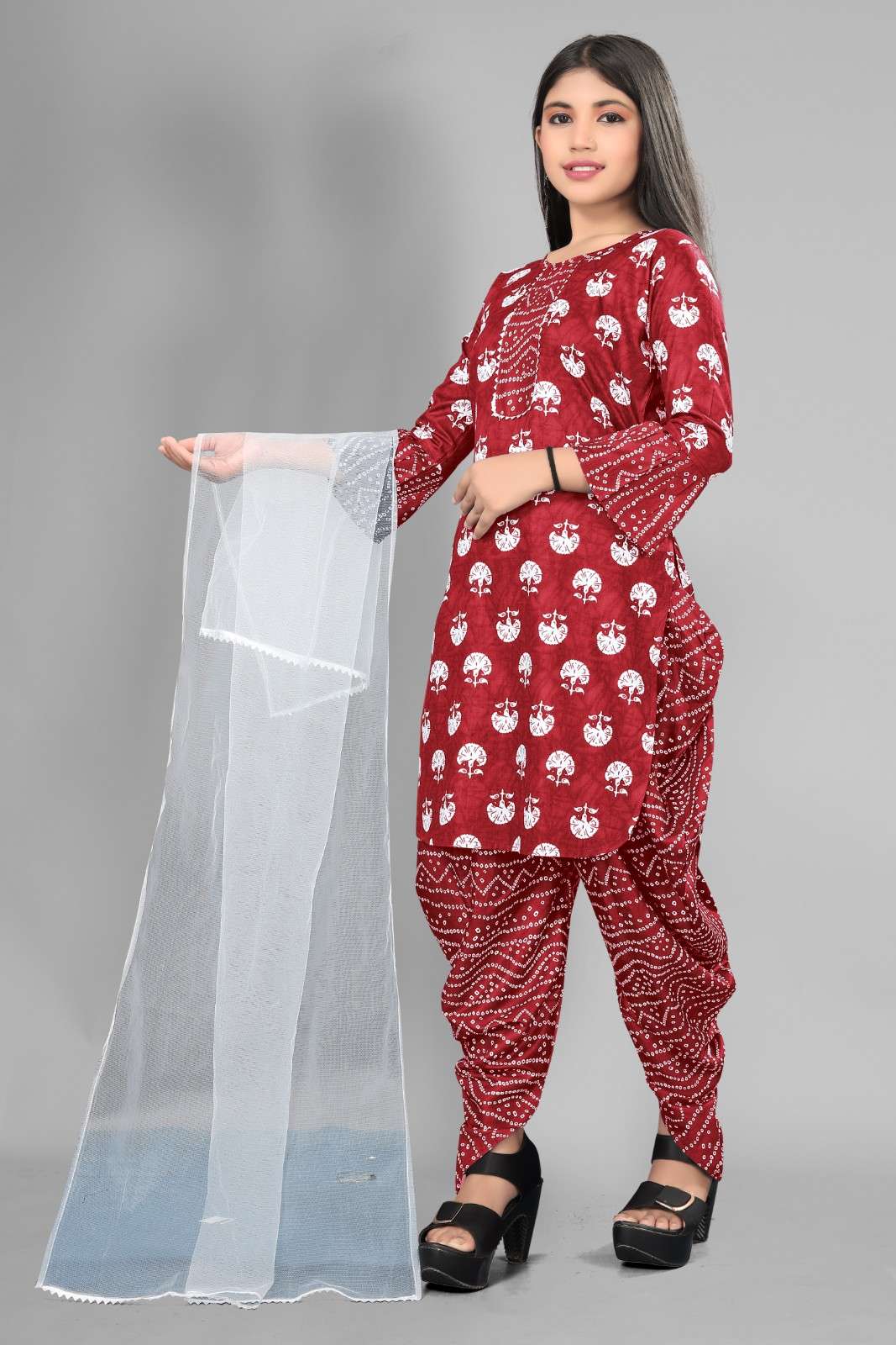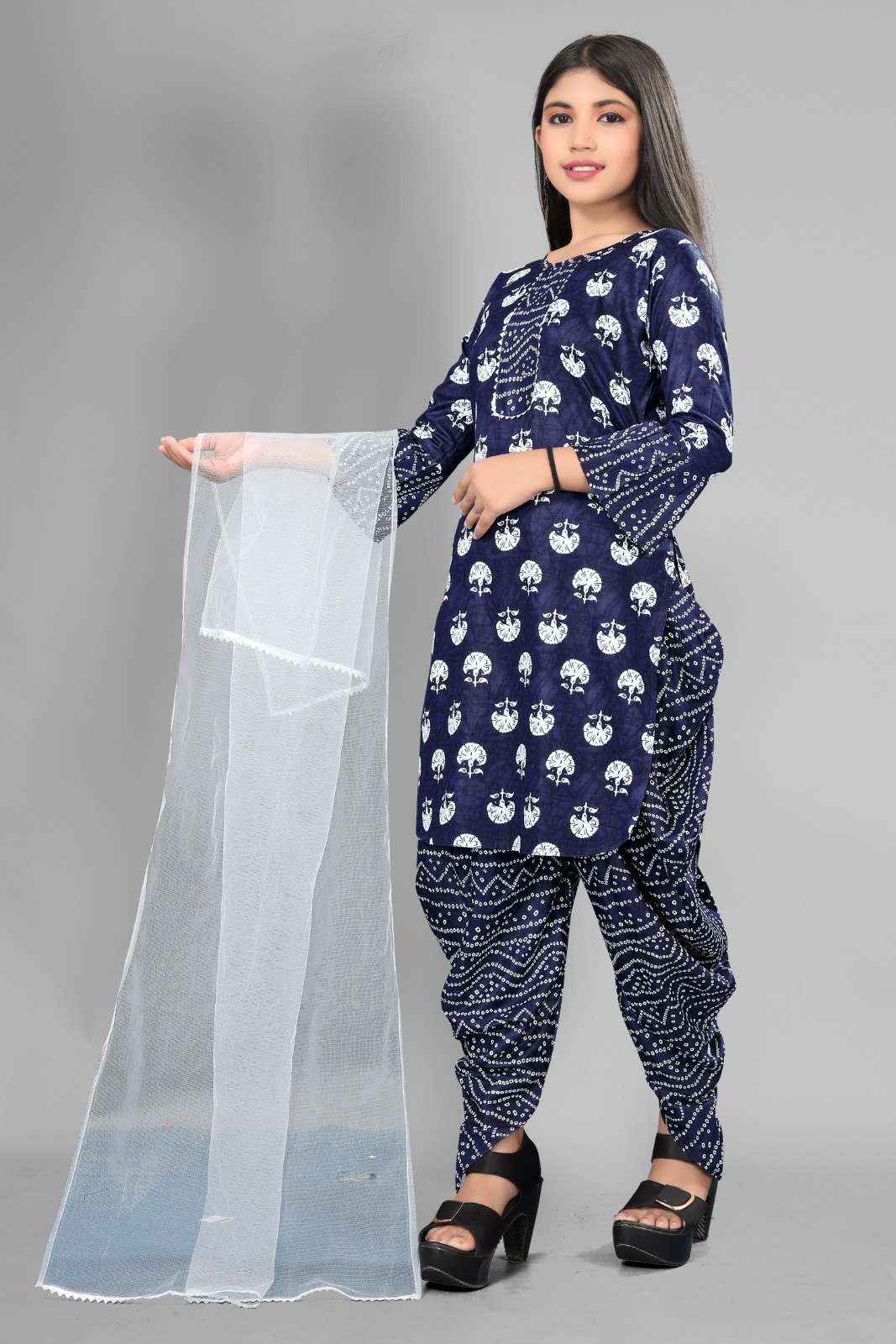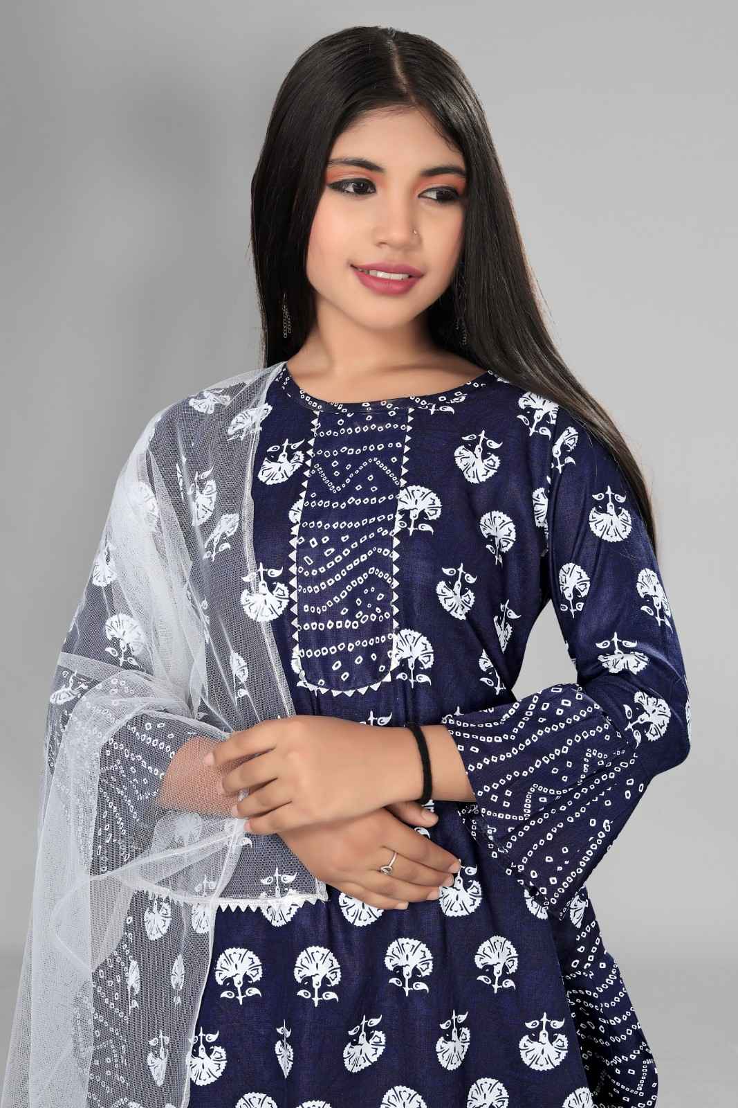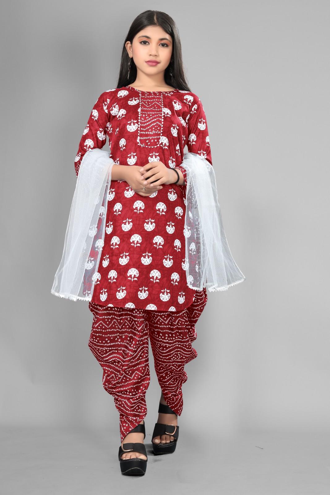 Product Name = Girls Attractive Aline Cotton kurti Printed Kurti and Dhoti Dupatta Sets for kids Girls kurti pant set kurtas kurtis