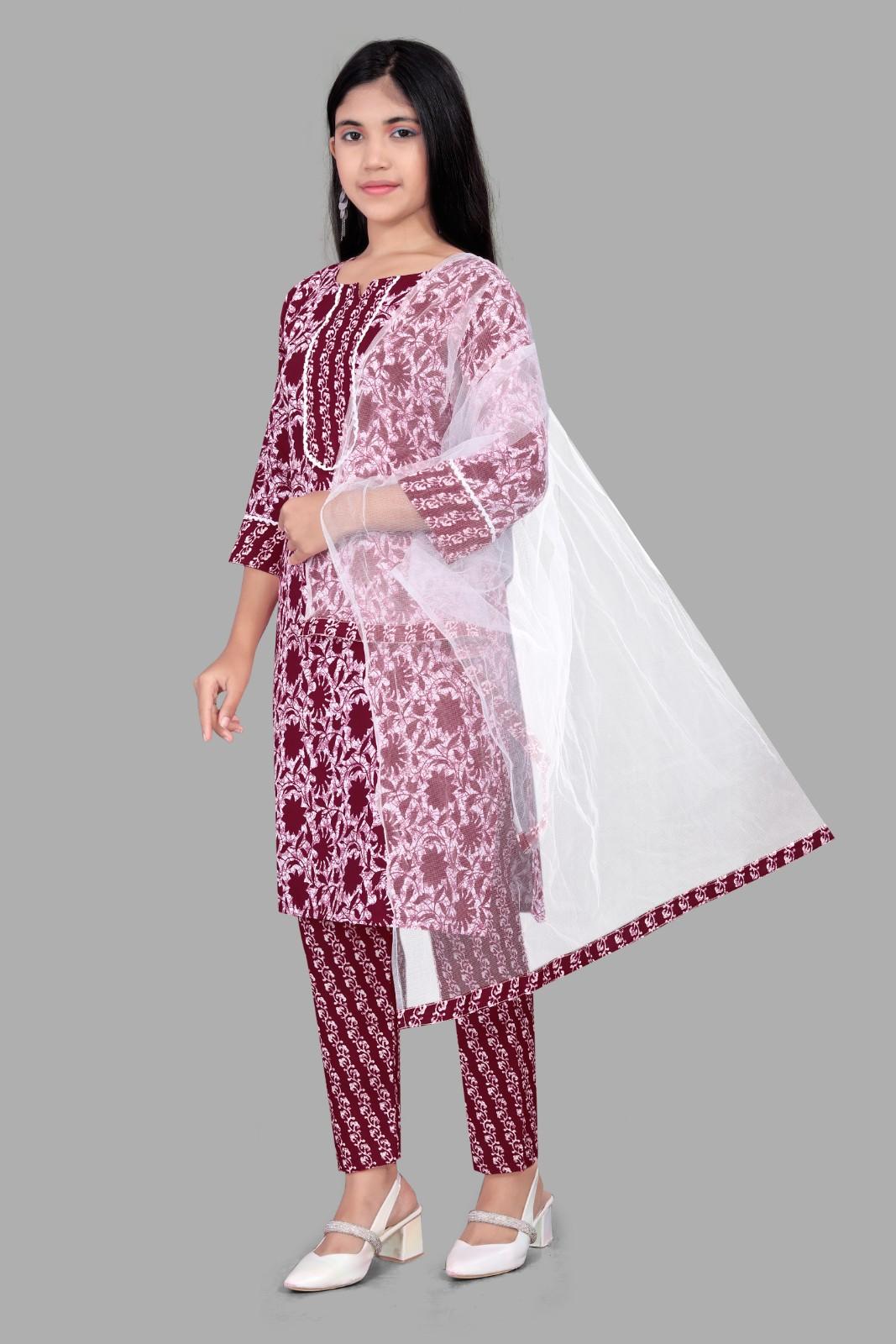 Product ke features : # Elevate your wardrobe with this exquisite maroon printed cotton salwar suit, designed for the modern girl who appreciates elegance and comfort. The intricate prints dance across the fabric, creating a stunning visual appeal that is both chic and timeless. Crafted from soft, breathable cotton, this kurti ensures a perfect fit and effortless style, making it an ideal choice for any occasion, from casual outings to festive celebrations. Embrace sophistication with this luxurious ensemble that embodies grace and poise.#Girls Dress#Girls Kurti